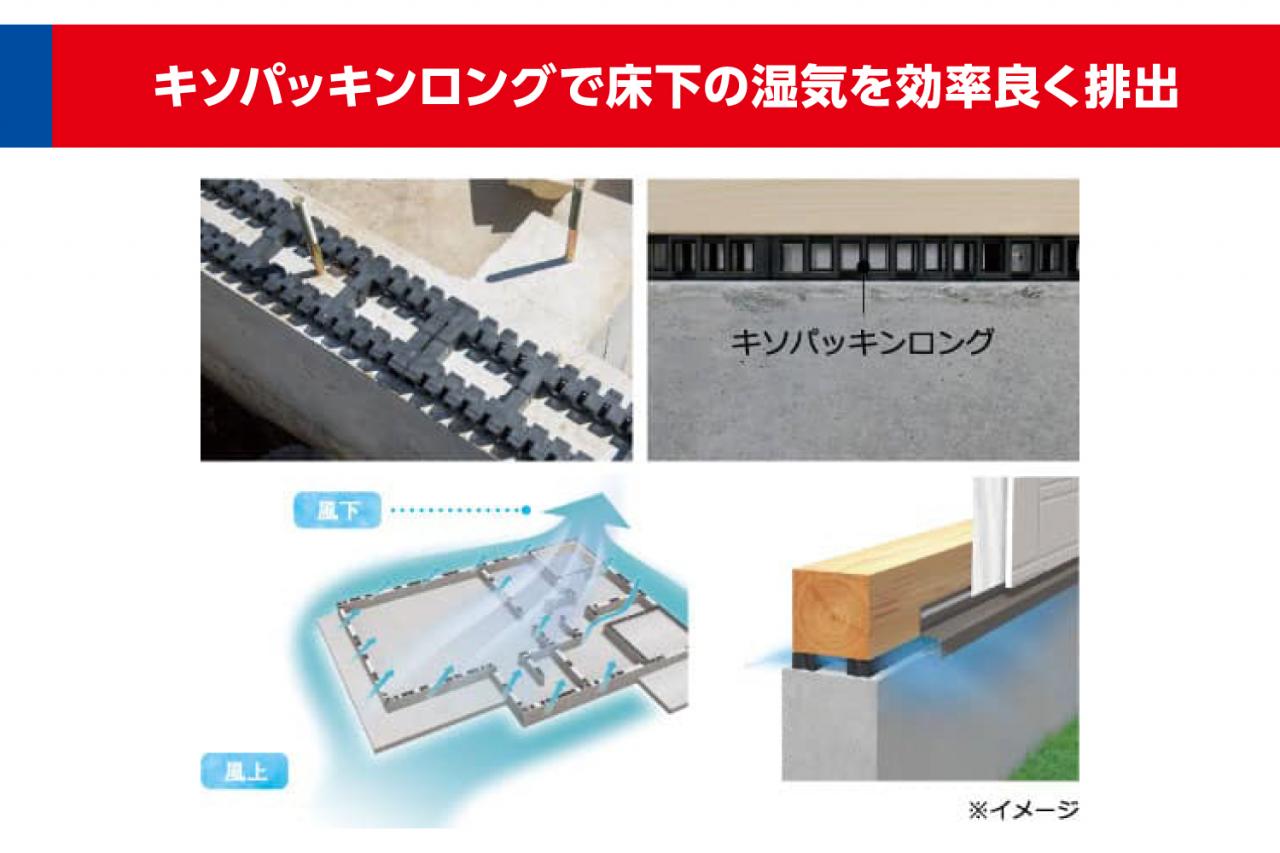 プランに採用される構造/床下の湿気を効率よく排出する基礎パッキンロングを採用(イメージ写真)