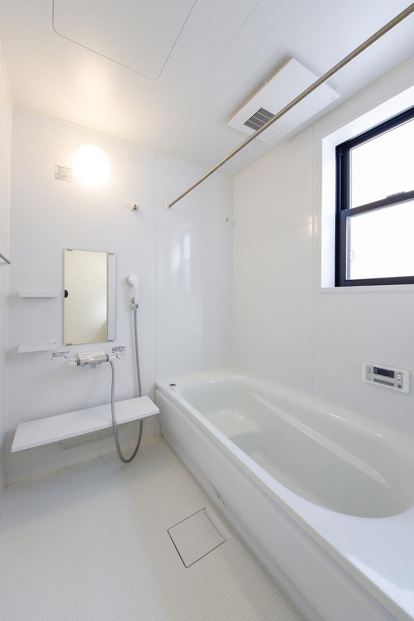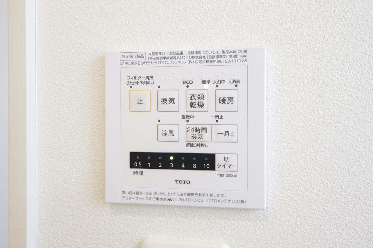 季節や天候に左右されず洗濯物を乾かせる便利で嬉しい浴室換気暖房乾燥機を設置。浴室の除湿・カビ予防にも効果的です