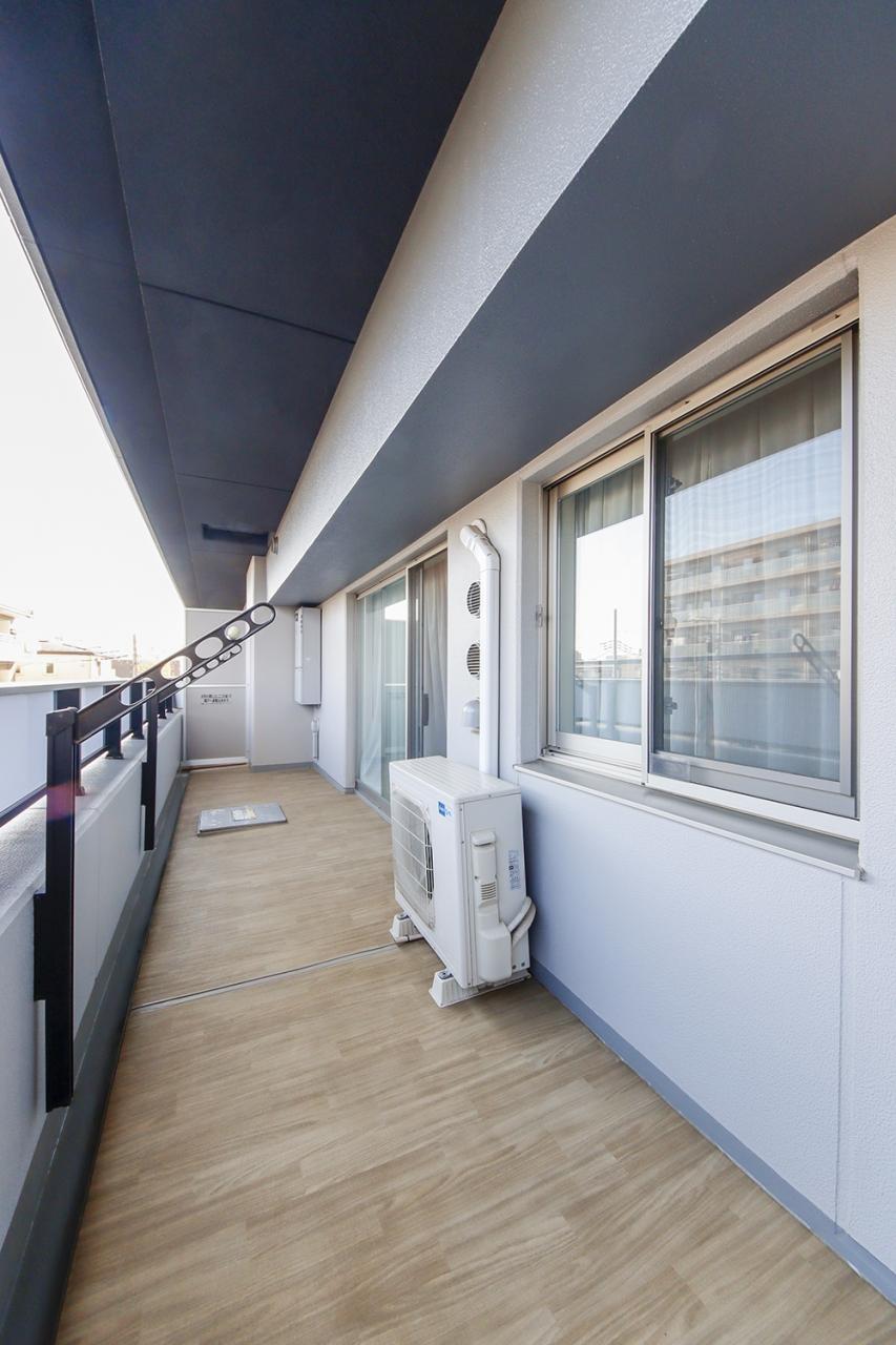 ◎ 奥行約1.8m・横幅約8mの開放的なワイドバルコニー
