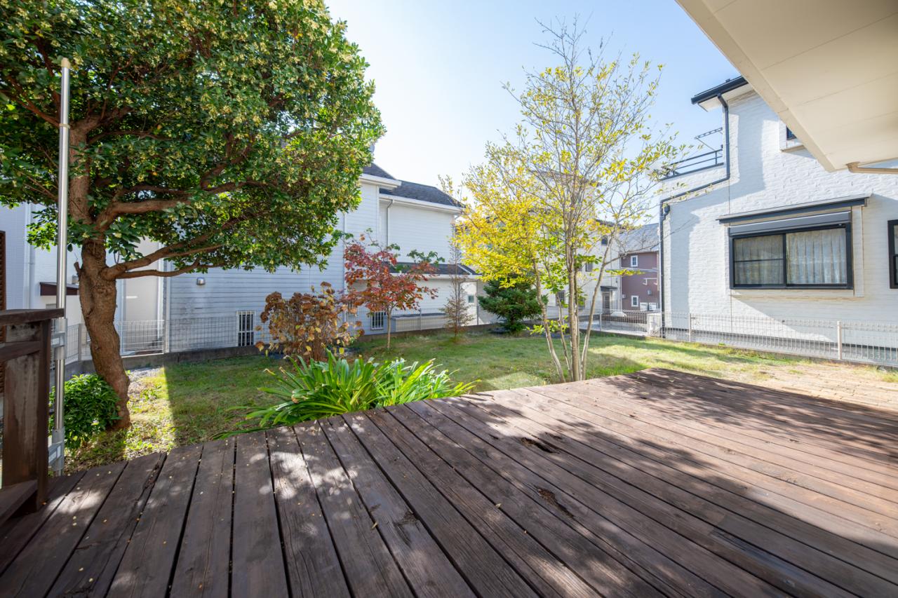 ■南庭/ウッドデッキ付き南庭はガーデニングを楽しんだり、バーベキューを楽しめる広々サイズです。