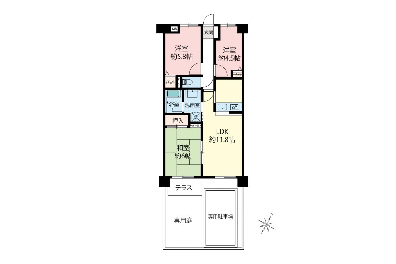 南東向き リフォーム済 和室あり 各室収納 専用庭 テラス 専用駐車場付