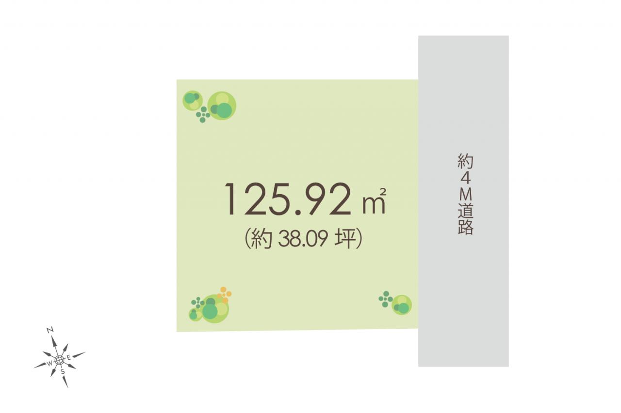 4mの道路に面した38坪のゆとりの広さの整形地です。プランが立てやすそうですね。徒歩圏内にスーパーやコンビニ、ドラッグストアなど複数の商業施設がある利便性の高い立地です。丁寧に対応させていただきますので、ご質問等お気軽にお問い合わせいただければと思います。