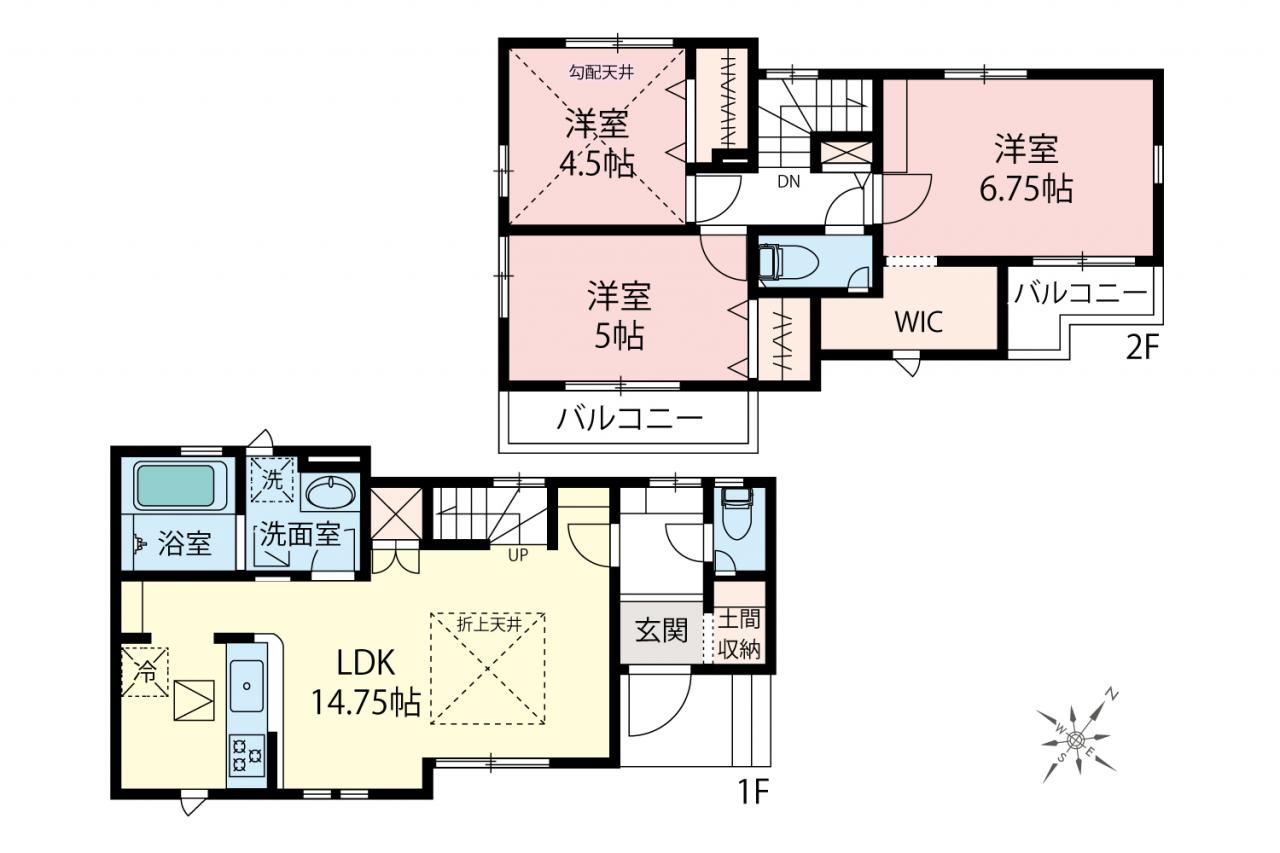 ■間取り図/2号棟 リビング階段採用14.75帖LDK・カウンターキッチン・土間収納・WIC付きで収納豊富!