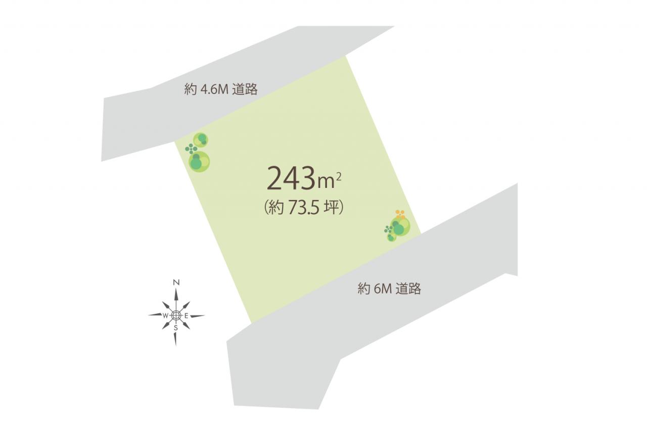 | 接道 | 南東側 6m 二方 公道、北西側 4.6m 二方 公道 | 私道負担 | - |