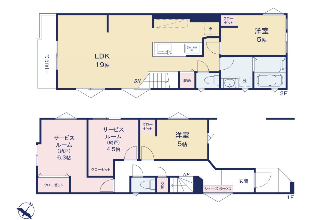 - ※間取りのSは「納戸」「サービスルーム」など建築基準法第28条に適合していない為、居室と認められない空間を表しています。