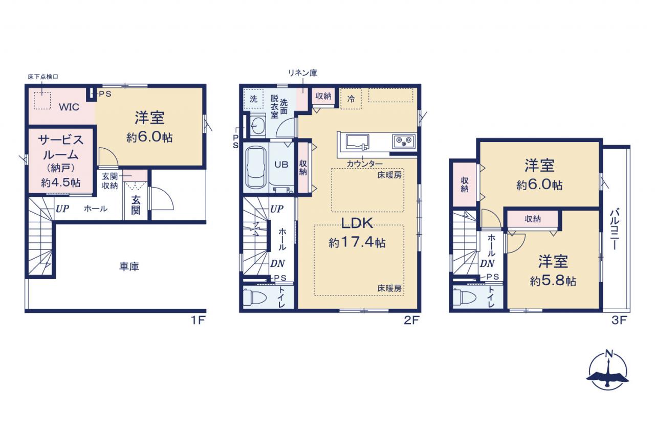 - ※間取りのSは「納戸」「サービスルーム」など建築基準法第28条に適合していない為、居室と認められない空間を表しています。