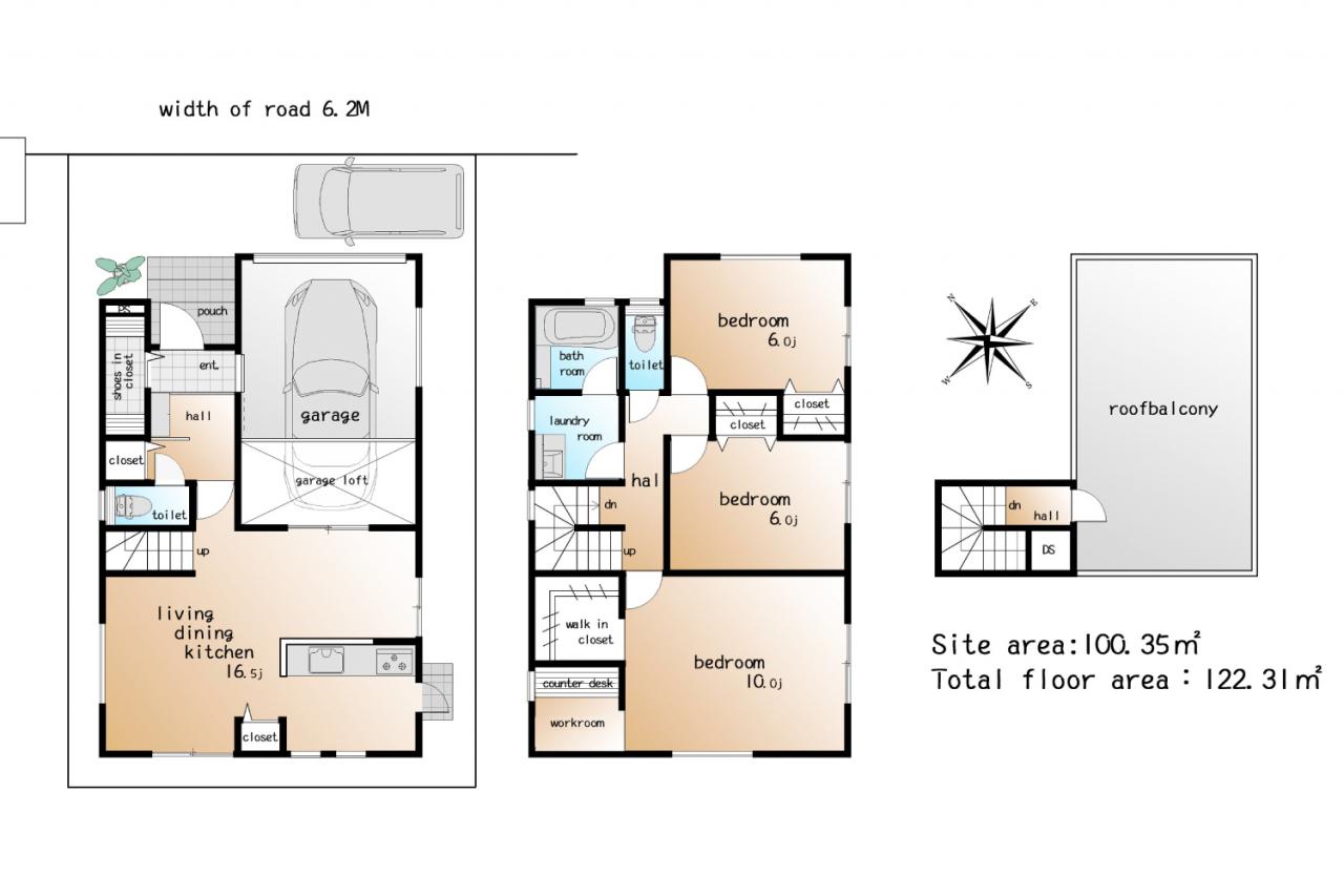| 土地面積 | 100.36m2(30.35坪) | 建物面積 | 122.31m2(36.99坪) |