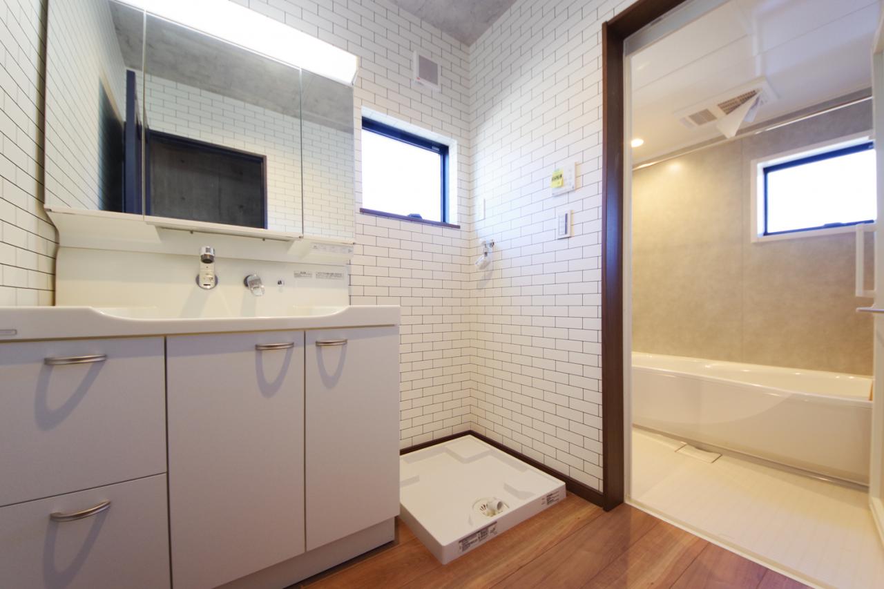 【洗面室】毎日使う洗面室にもこだわり、住まい全体でブルックリンスタイルを統一。