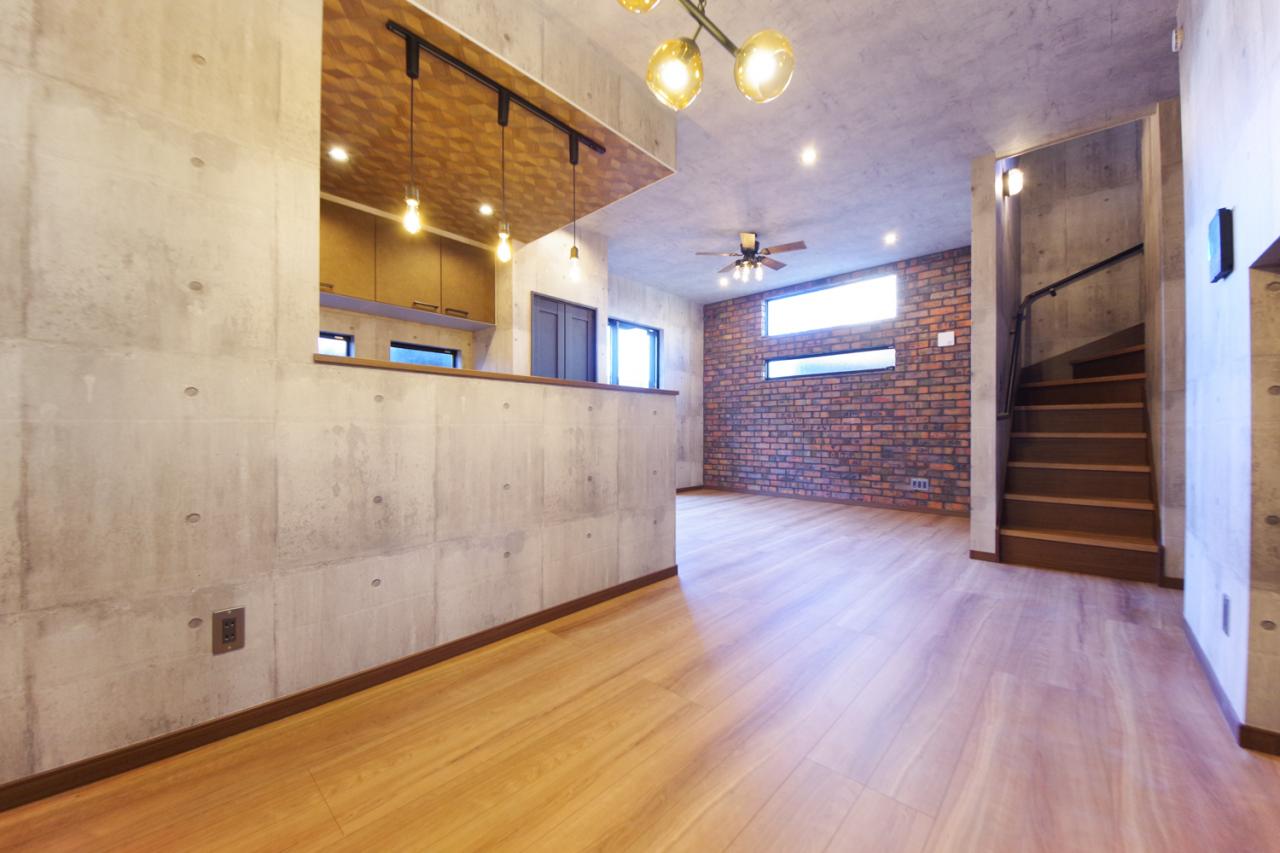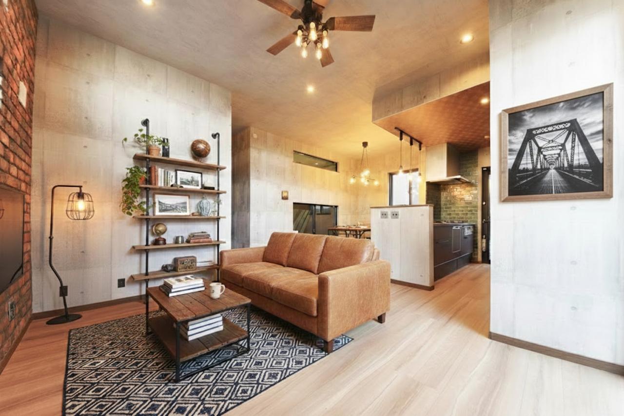 【LDK】レンガ調やアイアン素材を取り入れた、落ち着きのあるブルックリンスタイル。住むほどに味わいが増す、素材感を楽しめるデザイン住宅です。