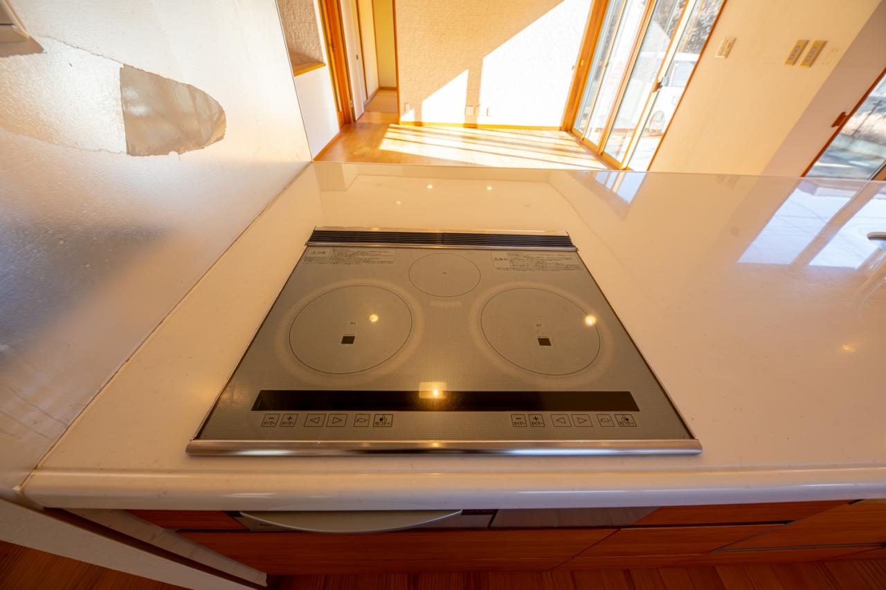 ■IHクッキングヒーター/火を使わず安心・安全。ワンタッチで操作が可能です。汚れが落ちやすくお手入れも容易なトッププレートです。