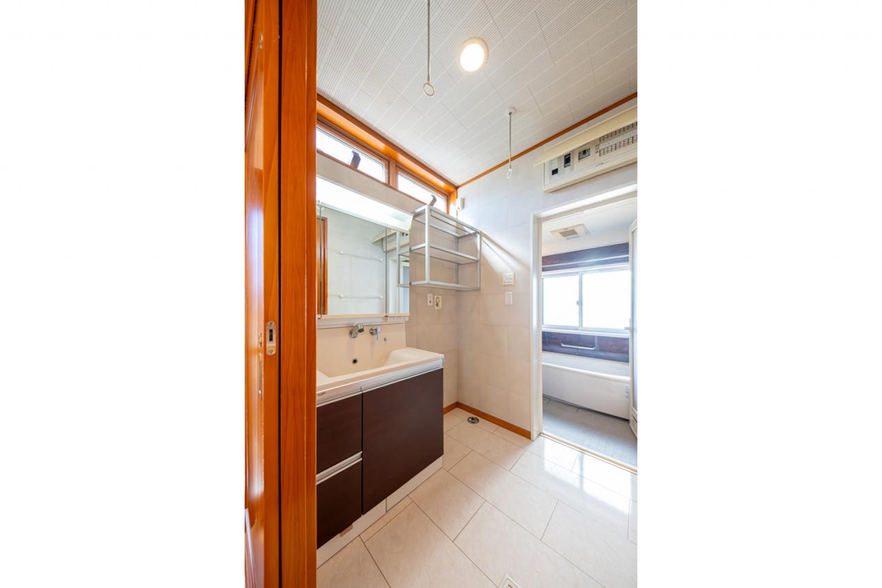 ■洗面化粧台/三面鏡の裏に収納空間を設け、家族一人一人の毎日の使い勝手にも配慮されたサニタリースペース
