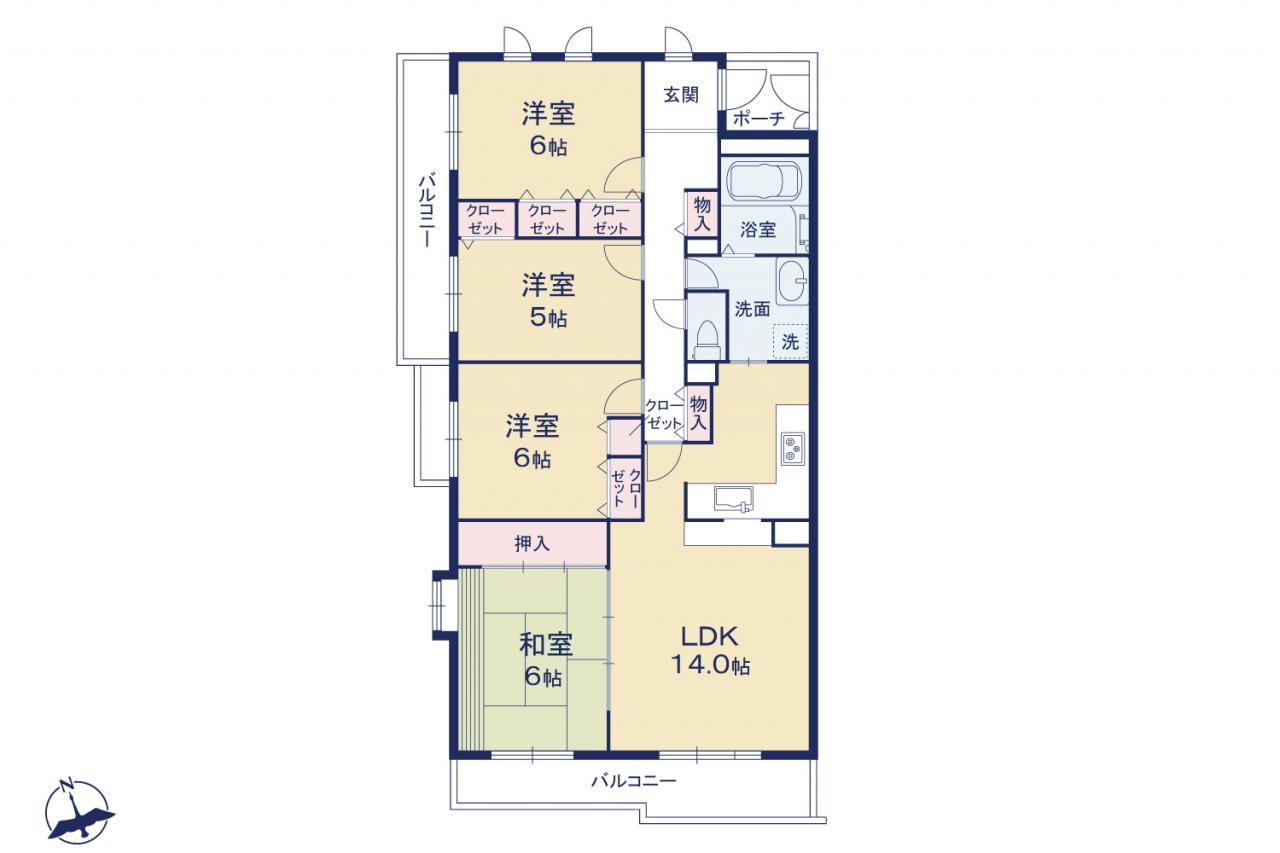 南西角部屋 2面バルコニー フルリフォーム実施 L字型対面キッチン 収納豊富 専用ポーチ