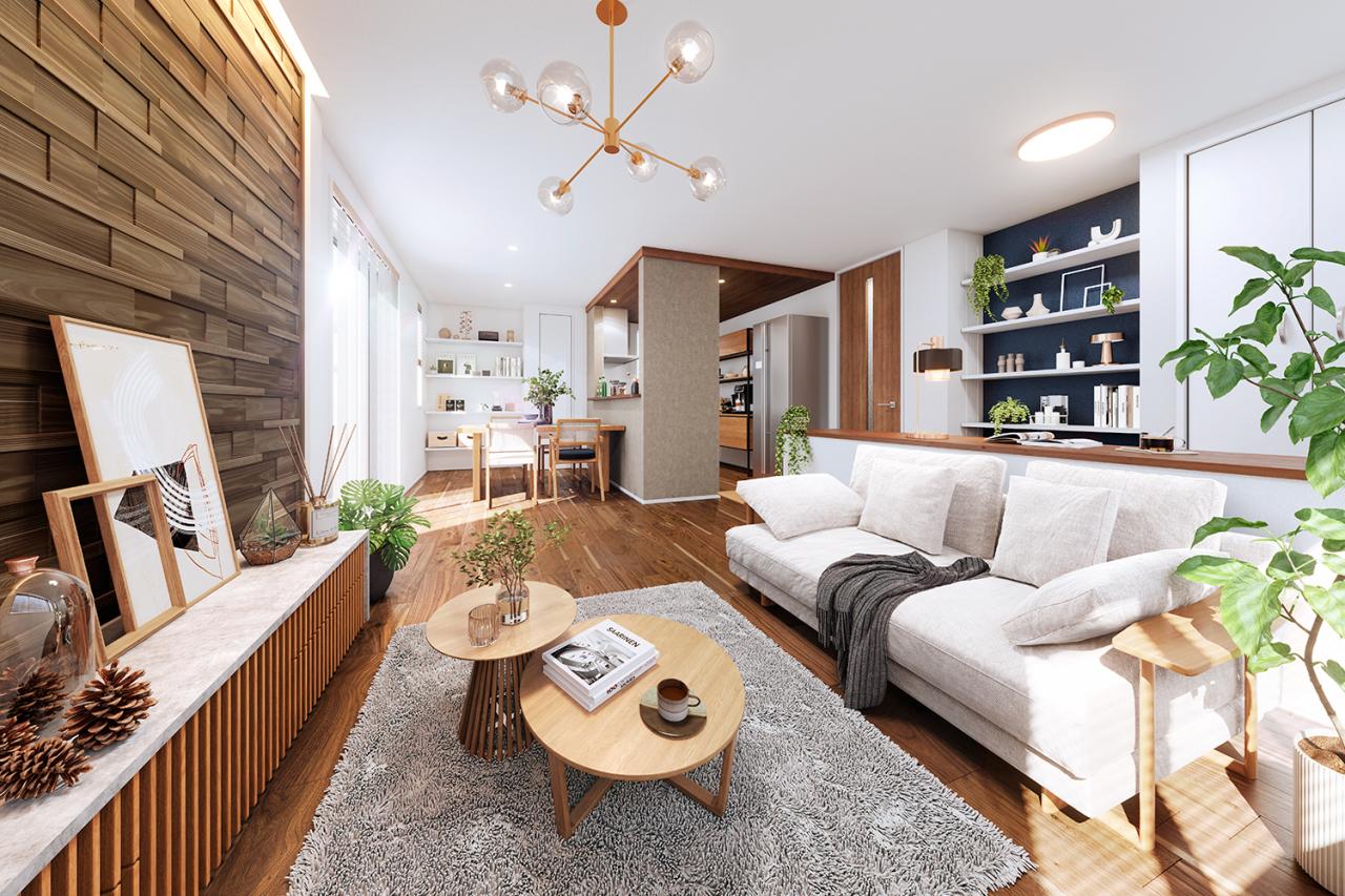 [21号棟] 3LDK/スケルトン階段/リビングテラス/吹抜け天井/リビングアクセントパネル「木らめ木」