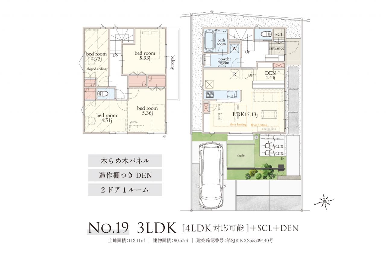 [19号棟] 3LDK・4LDK対応可能/造作棚付きDEN/リビングアクセントパネル「木らめ木」/ライフスタイルに合わせて間取りを変更できる2ドアワンルーム