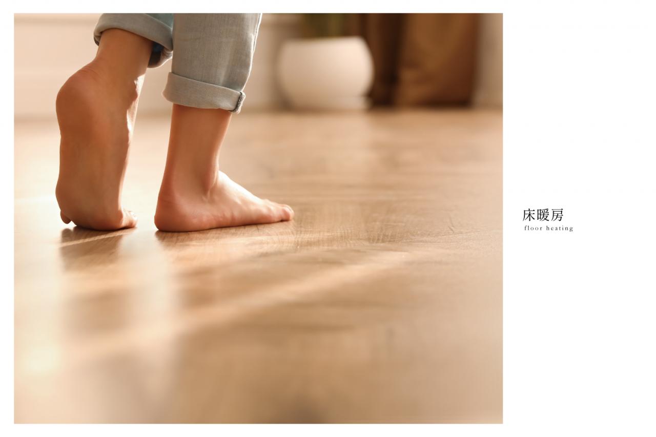 足元から暖かさを。床全体が均一に暖められ、空気が乾燥しにくい温水式床暖房(イメージ画像)