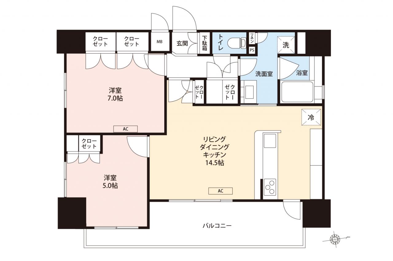 角住戸 2LDK 対面キッチン エアコン2台 ペット相談
