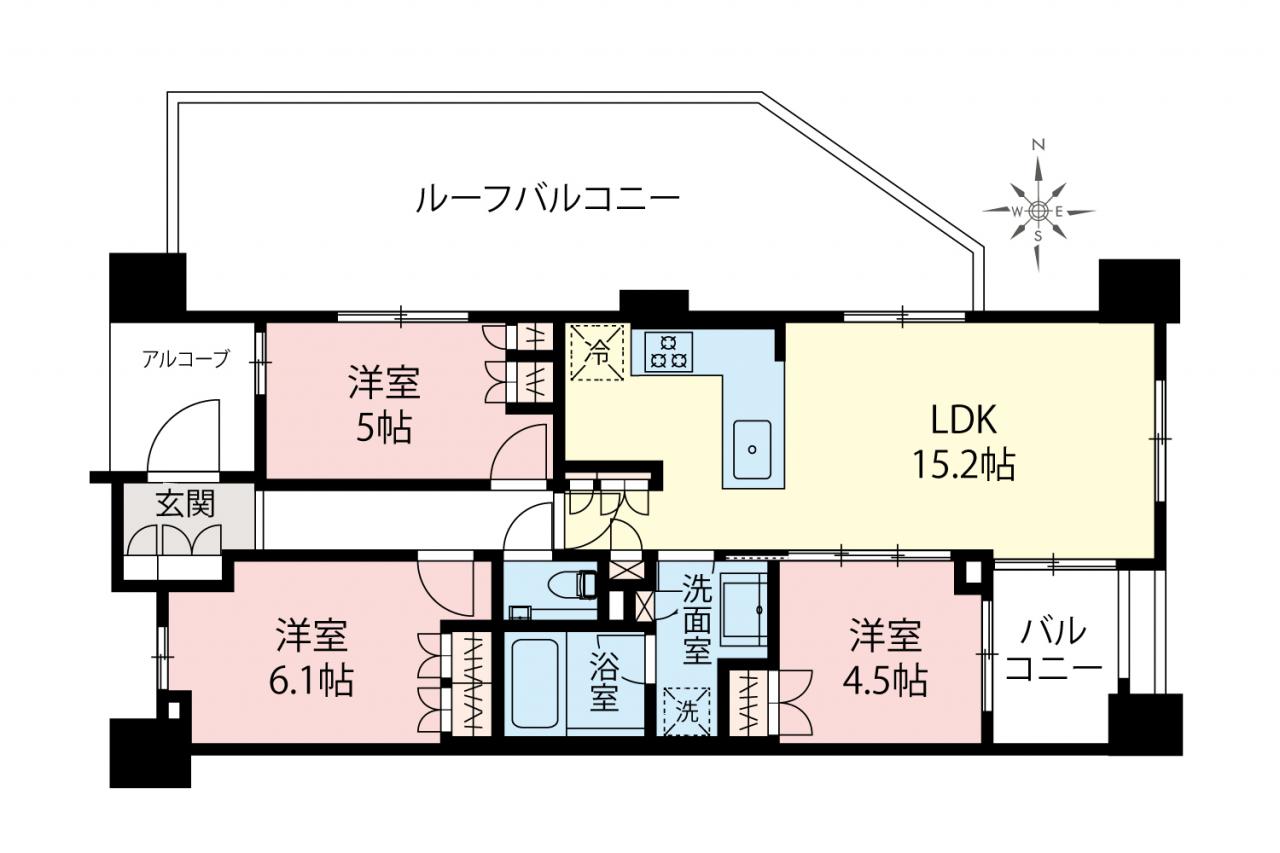 最上階 三方向角部屋 ルーフバルコニー L字型対面キッチン 眺望良好