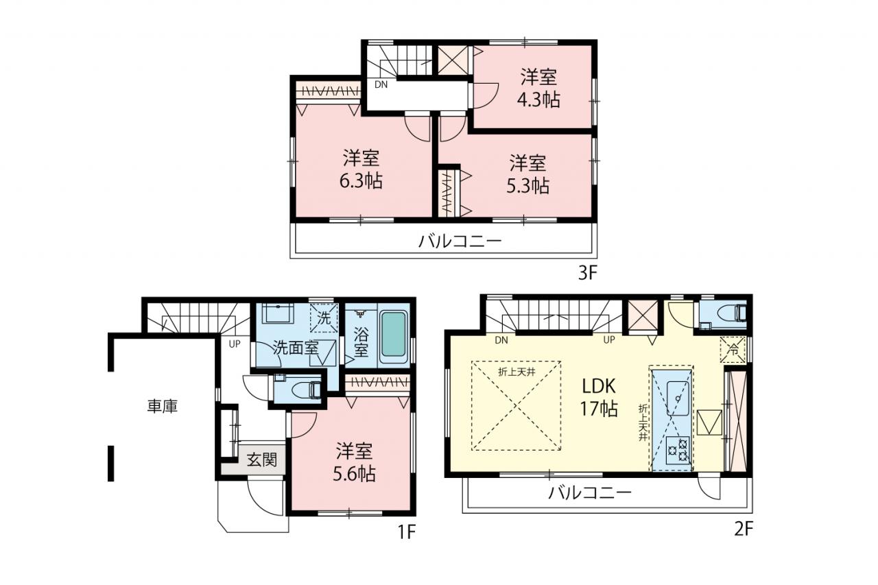 | 土地面積 | 63.78m2(19.29坪) | 建物面積 | 107.63m2(32.55坪) |