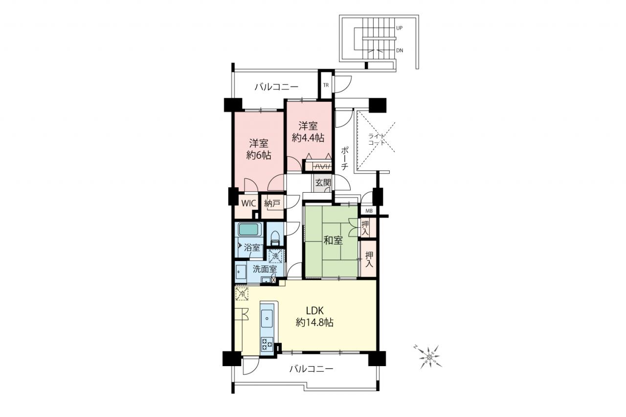 南西向きバルコニー 対面キッチン 宅配ボックス オートロック 和室 トランクルーム