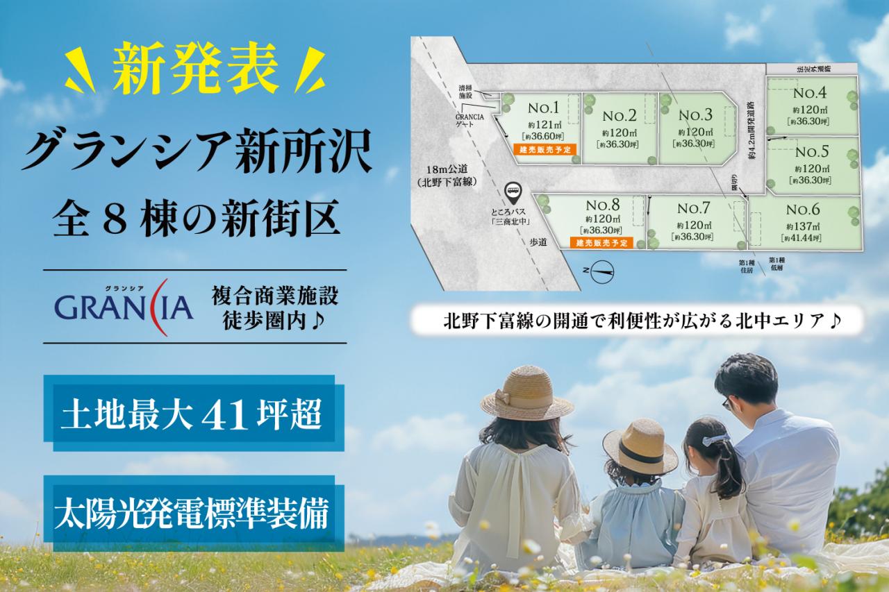【新発売/敷地最大41坪超/太陽光発電パネル標準装備!】グランシア新所沢 全8区画 ~自由設計で建てる注文住宅用地~