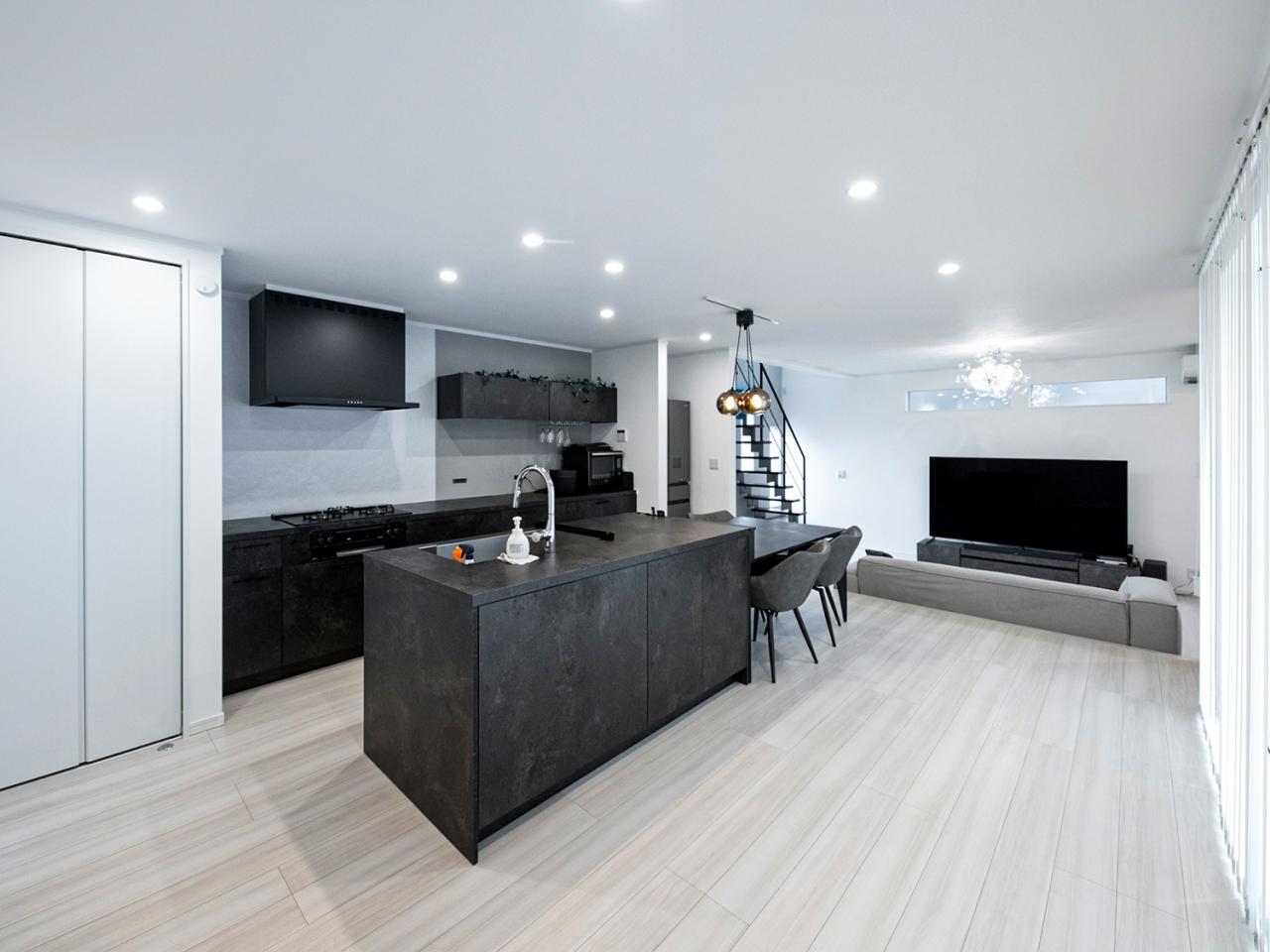 【ホテルライクな空間、日常が特別に変わる】II型キッチンを採用し、より開放感のある上質で洗練されたLDK。統一感あるカラーはセミオーダーならでは(建物プラン例 建物価格/3100万円 建物面積/106.41m2)
