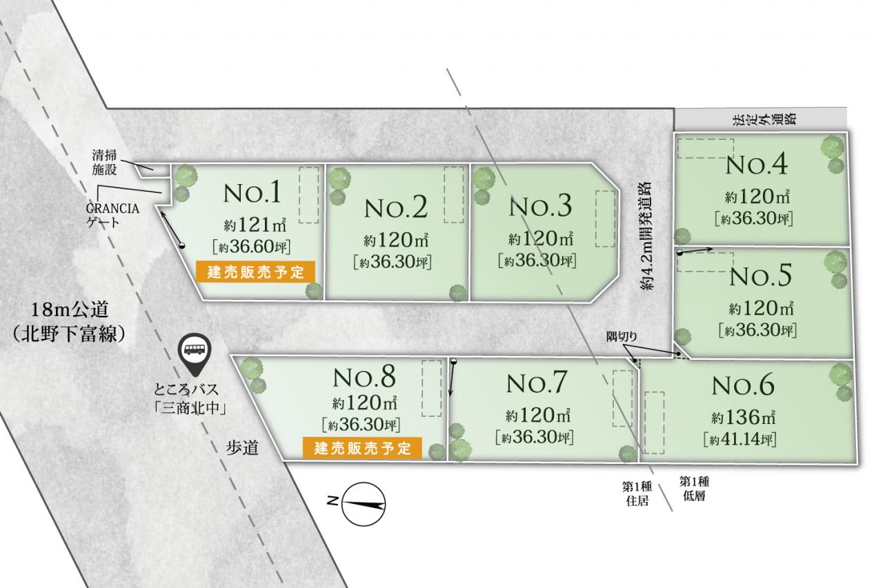 ◎全区画で土地面積約120m2(約36坪)超え