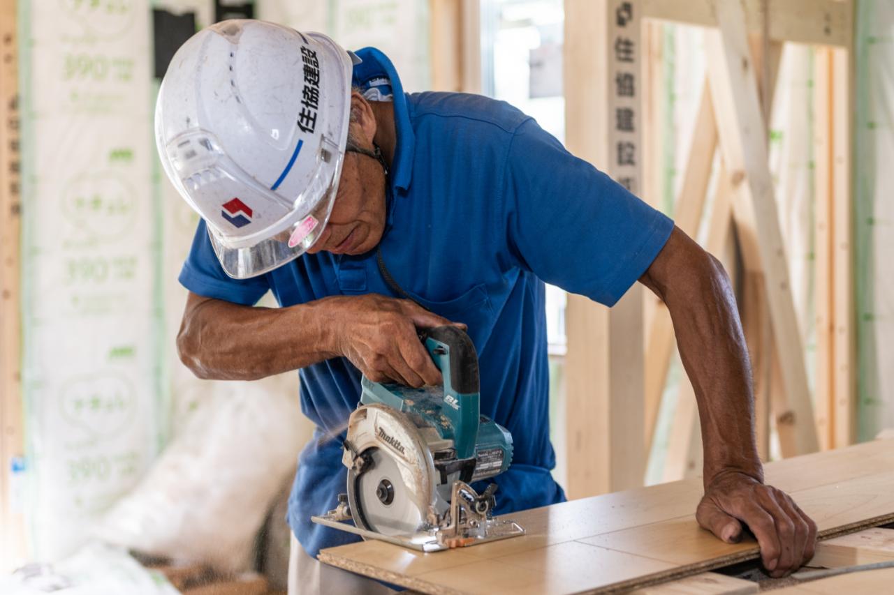 【国産ヒノキを主要構造材すべてに採用】プランに採用される仕様/国の基準を大幅に上回る耐久性に優れたJAS認定の国産檜材を柱・土台・梁に採用。これだけは譲れない住協のアイデンティティです