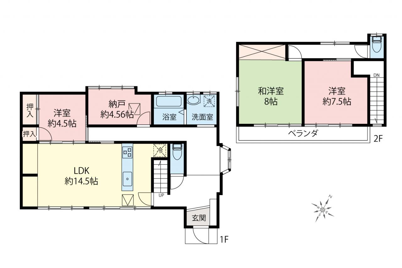 | 建物構造 | 木造 地上2階建て | 接道 | 北西側 4.02m 二方 公道、南東側 4.55m 二方 公道 |