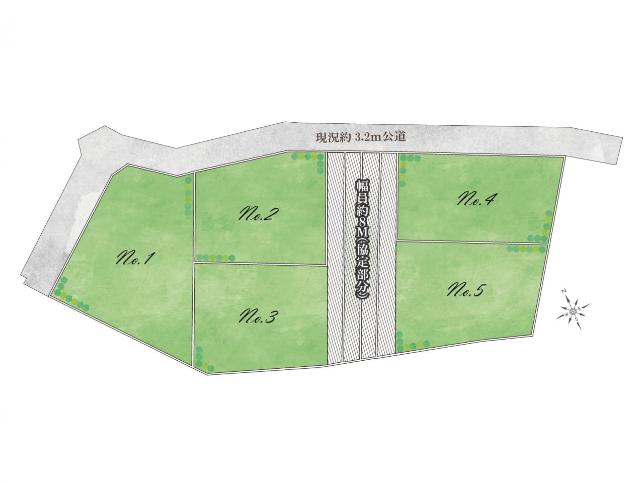 | 備考 | - ※景観法 ※協定部分:3区画(約48㎡)、5区画(約46㎡) ※区域外流入負担金:1,000円/㎡ ※開発許可申請・適合証明申請・公告前承認申請等が必要になります |