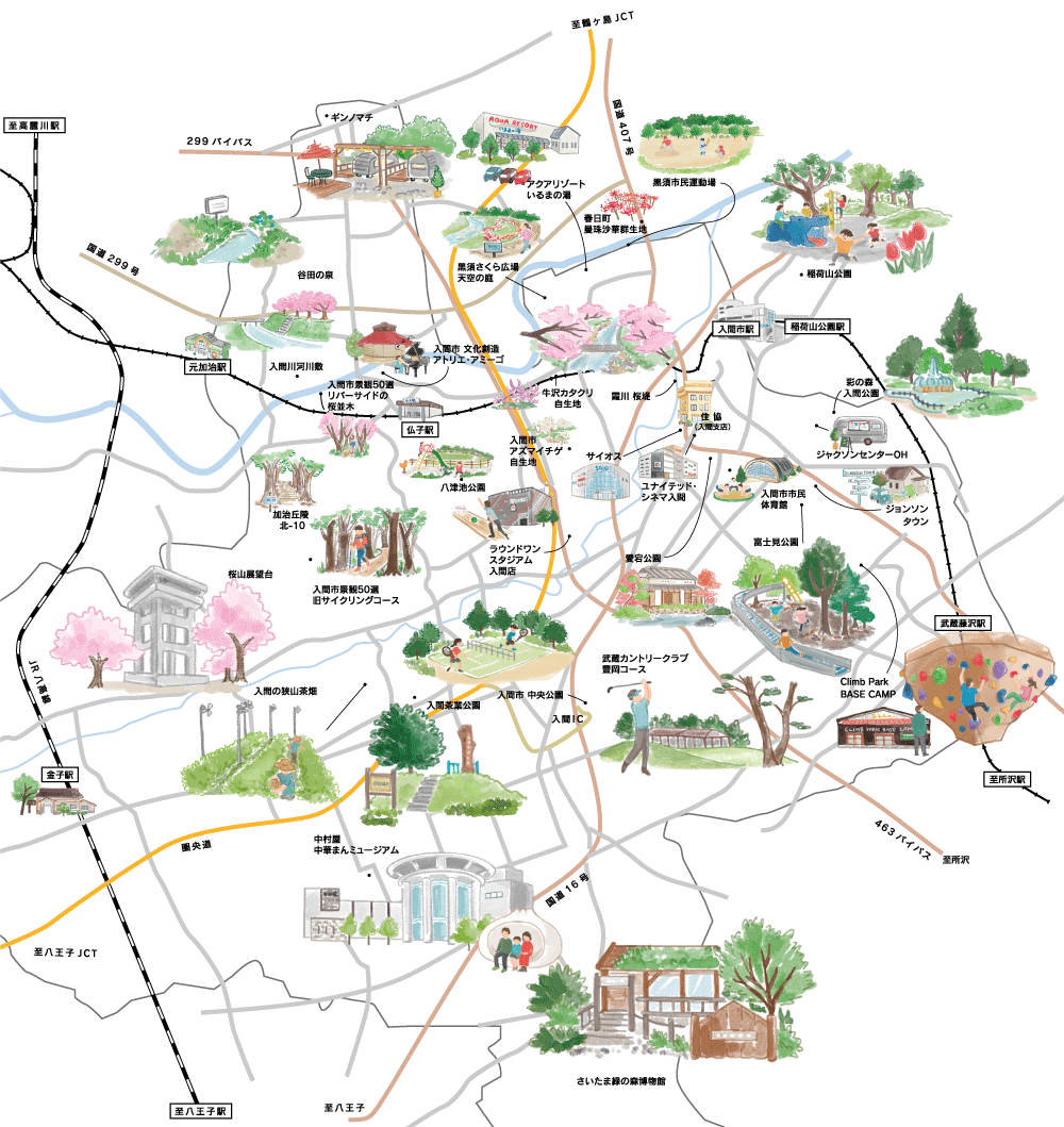 彩(さい)の森入間公園では、その名の通り、季節によって異なる彩りが楽しめます。春はソメイヨシノや枝垂桜を肴にお花見、夏にはBBQや水遊び、秋には紅葉を見ながらジョギングをして、冬は澄んだ空気のなかでお散歩...公園のなかには、手ぶらで行けるバーベキューエリアや移動車カフェもあります!テラスがあるので、シートを持っていなくても大丈夫。ふらっと立ち寄って、リフレッシュしていくのもいいですね。