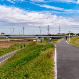 狭山市の豊水橋から川越市の入間大橋まで21.9kmに及ぶ自転車道。途中、公園や緑地なども多く、休憩しながら走れるのでファミリーにもおすすめ。