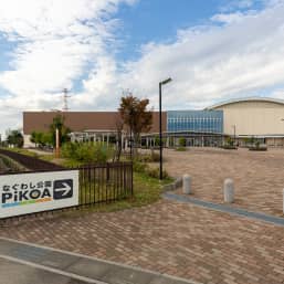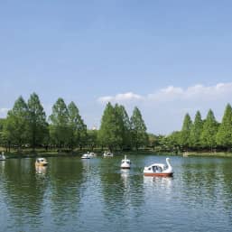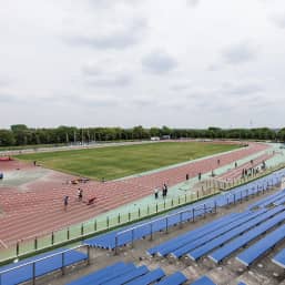 陸上競技場、テニスコート、総合体育館が設備され様々なスポーツに対応。広い芝生を持つ自由平場には遊具が置かれ、ファミリーに人気です。