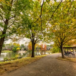 武蔵野の面影が色濃く残る公園。雑木林が心地よく、芝生広場、フィールドアスレチック、テニスコートなどがある。