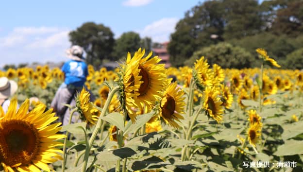 「清瀬ひまわりフェスティバル」は都内最大級となる約2万4千平方メートルの敷地におよそ10万本のひまわりが咲き誇る夏の一大イベントで、毎年約10万人もの来場者が訪れます。一面に咲く黄色いひまわりと、澄み切った青空とのコントラストが夏らしさを感じさせます。※2021年の清瀬ひまわりフェスティバルは、コロナ禍の影響を受け、開催は未定となっています。あらかじめご了承ください。
