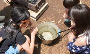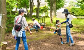 経験豊富なスタッフにしっかりと見守られながら、例えば、自分の力で火を起こしてみたり、自由な工作やお手製のアスレチックを楽しんだり、泥にまみれたり。もう久しく見ていない、狭山台中央公園へ訪れた私たちが見たのは、ゆたかな想像力を爆発させて元気に遊びまくる子どもたちの姿でした。