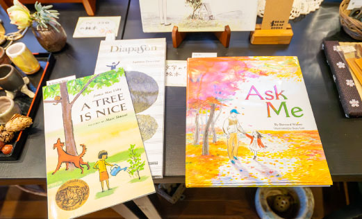 昔はカフェだったので、コンサートなどをやっていました。陶芸しかやっていなかった時は、陶房コンサートと名付けて、プロの演奏家をお呼びして開催していました。カフェを始めてからもお店でお食事をしながら演奏を聴くことが出来る、クラシックコンサートやジャズライブを行っていました。他には老人ホームと提携をして、普段気軽に外出ができない入所者さんをカフェでおもてなししたりと、コロナ前は多くのイベントを行っていました。コロナ禍になってからは、出来るイベントが制限されていく中で本屋さんと提携し、多くの方に海外の絵本に触れていただける、ブックフェアを行いました。絵本というと子どもが対象に感じる方が多いですが、海外の絵本は戦争などの内容もあり、筆者から大人へのメッセージもきっとあると思います。ぜひ大人の方にも見ていただきたいです。今では店内に洋書絵本を常設するようになったので、お客様に見ていただく機会が増えて嬉しいです。